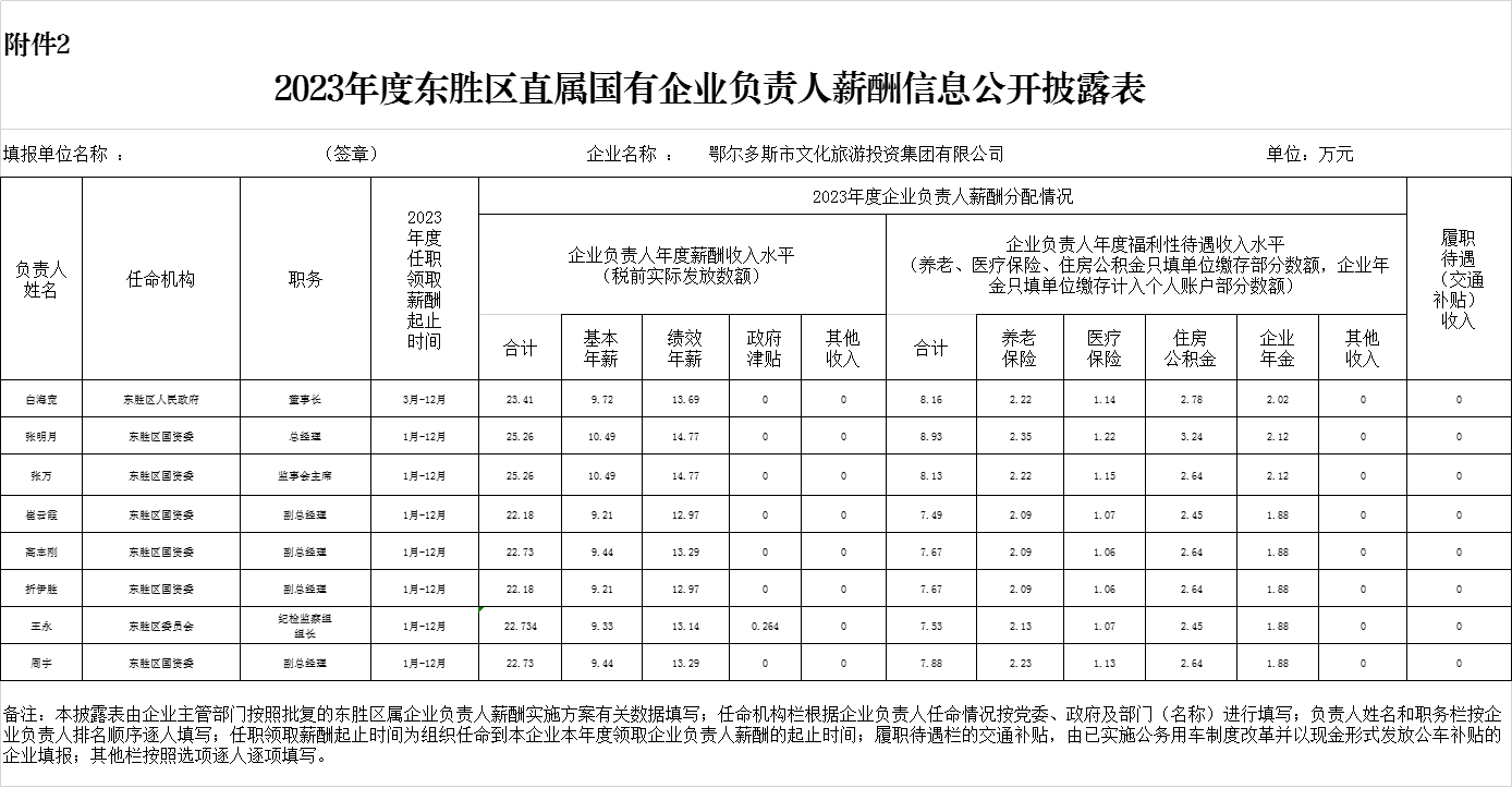 2023年度東勝區(qū)直屬國有企業(yè)負(fù)責(zé)人薪酬信息公開披露表
